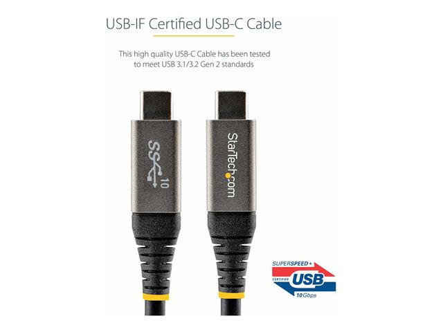 StarTech 3ft (1m) USB C Cable 10Gbps, USB-IF Certified USB-C Cable, USB 3.1/3.2 Gen 2 Type-C Cable, 100W (5A) Power Delivery Charging, DP Alt Mode, USB C to C Cord, Charge & Sync
