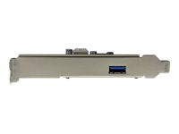 Upgrade your computer to the faster speed of USB 3.1 Gen 2, by adding one external and one internal 10Gbps USB Type-A ports. This USB 3.1 Gen 2 card prepares you for the next generation of USB performance, on the inside and outside of your computer. The 2-port card adds one internal Type-A connector as well as one external Type-A connector to your desktop computer, with a combined bandwidth of up to 10Gbps. For power-hungry devices, the card also has an internal SATA power connector, enabling you to use your computer's power supply to add more power to the ports. With greater bandwidth, you can save time and avoid the performance bottlenecks that are often associated with other connectivity technologies. With an internal port, you can connect internal devices that use a USB Type-A connector, such as a front-bay SD card reader. Plus, you can use the internal port to keep peripherals safely inside your computer case - perfect for high-capacity USB flash drives or interface devices used for external wireless peripherals such as keyboards and mice or Bluetooth adapters. The card also features an external port that can be used for any USB Type-A device, like your external hard drive or any wired peripheral. By adding 10Gbps USB ports to your computer, you can harness the speed of USB 3.1 Gen 2 and rest assured that you're ready for both current and future high-bandwidth USB-A devices. With higher data throughput, this PCI Express USB 3.1 card is a necessity for external hard drives, , and many other USB 3.1 peripherals. Plus, the USB card integrates a SATA power connector to support high-powered devices, making it ideal for use with large external storage solutions. For more flexibility, you can couple the card with a USB31AC1M USB-C to USB-A cable (USB31AC1M) and connect your USB Type-C devices. Connecting your older peripherals isn't a problem. This versatile USB 3.1 Gen 2 (10Gbps) card is backward compatible with legacy USB 3.0 and 2.0 devices that use the common USB Type-A port, so you can eliminate the added expense and aggravation of purchasing new devices. For a hassle-free installation with no additional software or drivers required, the card is natively supported by most operating systems, and interfaces with the PCI Express 3.0 x4 slot on your computer. Plus, the high-quality card includes both standard-profile and low-profile (half-height) brackets, making it easy to install in full or small form-factor PCs or servers.