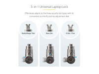 - Informasjon The StarTech.com 25-Pack Universal Laptop Lock offers an effective solution to secure a wide range of devices against theft. This keyed cable lock system is designed for compatibility with the Noble Wedge Slot, Kensington Nano Slot, and Kensington Standard Slot (K-Slot), making it suitable for securing docking stations, monitors, notebooks, printers, and projectors. Constructed from durable steel and plastic, the anti-theft, cut-resistant cable ensures your devices remain safe in any setting. Each package includes 25 laptop security locks, 50 keys, 75 lock spacers, and 25 hook-and-loop straps, providing a comprehensive security system for multiple devices. The master keyed locking mechanism allows for easy access by authorized personnel, simplifying device management while maintaining security. TAA compliance further assures the quality and reliability of this security solution, making it an ideal choice for protecting valuable equipment.