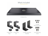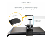 StarTech Under-Desk Keyboard Tray, Clamp-on Keyboard Holder, Supports up to 12kg (26.5lb), Sliding Keyboard and Mouse Drawer with C-Clamps, Height Adjustable Keyboard Tray